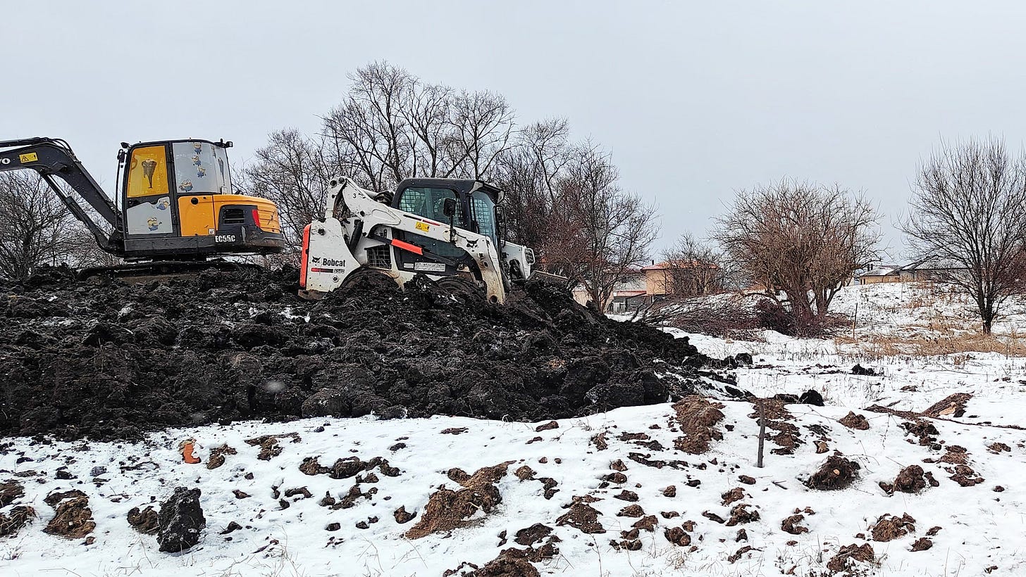 At the start of day 2 it was evident the road will be done quicker than expected so both of the machines could spend some time playing in the dirt. The snow was melting in the same time and everything was very, very wet and muddy.